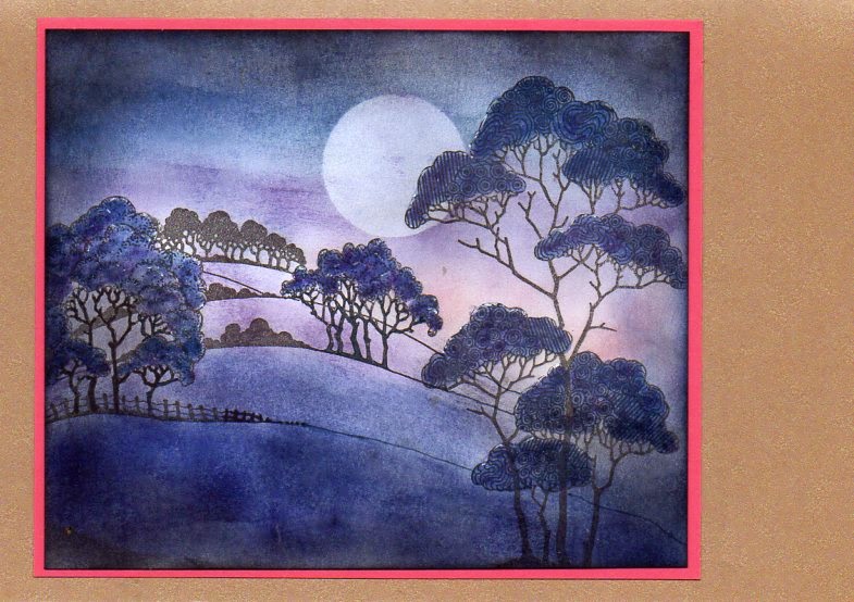 The last two were actually done in the morning, and use a deer stamp and a couple of bullrush stamps from Janet's collection of foliage stamps.